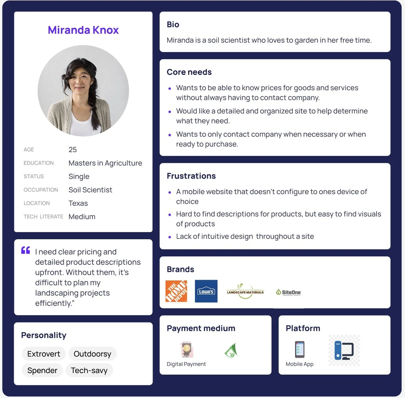 Wholesale Landscape Materials is a small landscaping supply company based in San Antonio, Texas. As the business continues to grow, the team has struggled to manage an increasing volume of customer inquiries. With only two office employees responsible for both phone and in-person sales, much of their time is spent answering repetitive questions. This project aims to identify user pain points and design a digital solution that reduces call volume while improving the overall customer experience.